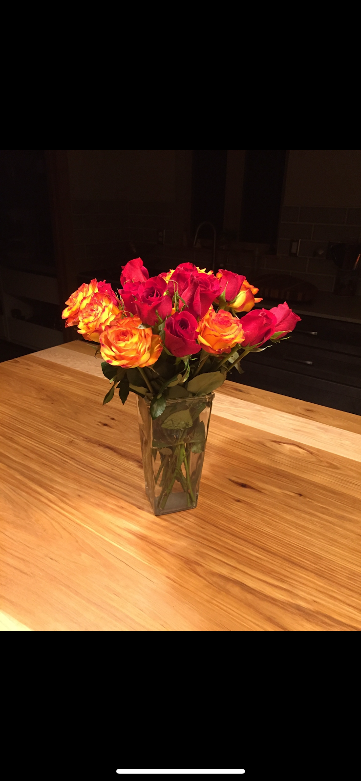 This is one of the very first pictures in my camera roll. I love still lives. Although I won't betray all the other types of paintings and say its my favorite, it is really up there. This is super simple but the brown in the table and in the background really does it for me. It goes with the warm flowers nicely.